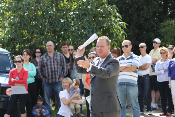 Going, going, gone! Robert Ding (), sells 11 Frederick St, Balwyn, under the hammer for $2,580,000, 2 bidders
