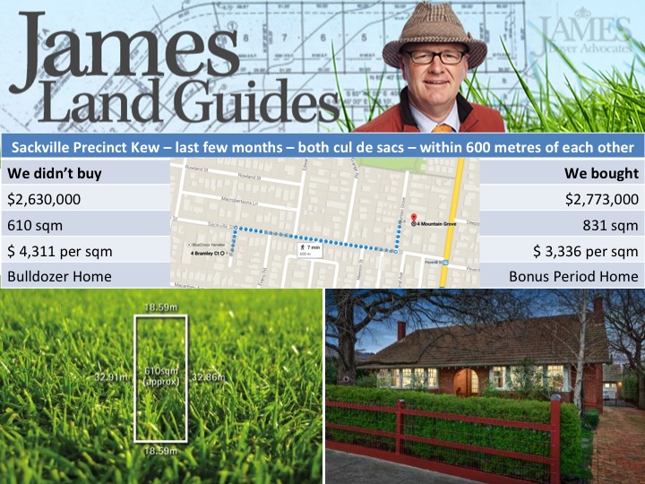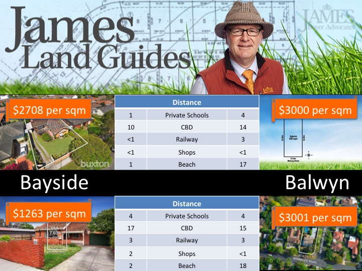 Bayside may have been undervalued for years and we have been buying for many clients for many years. But the genie is leaking out. Today we bought Brickwood Street, Brighton (David Hart) for an investor client. It was a smart buy on their behalf. It is getting harder and will continue to do so for investors and homebuyers alike, if the tsunami of Overseas interest continues to hit Bayside over the next few years. See above graphic from our James Client Land Guides for comparable kilometre distances.